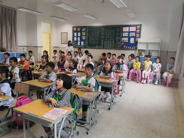 随后,孩子们进入了一年级不同的班级,观摩小学生课堂。教室里摆放整齐的单人桌椅,小学生坐姿端正专心听课,积极举手踊跃发言,都让孩子们感受到了小学课堂和幼儿园的不同,向往着也能成为一名小学生。