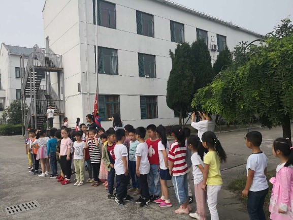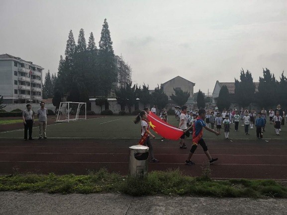 上午8时,孩子们排着整齐的队伍,迈着矫健的步伐,精神抖擞地来到小学塑胶操场上等待。孩子们看到小学的哥哥姐姐们,踩着音乐的节奏跑到操场上,不自觉地就踏起脚来。当国旗冉冉升起的时候,孩子们认真地注视着五星红旗。在庄严的升国旗仪式结束后,孩子们站在原地,聆听了校长老师的国旗下讲话。