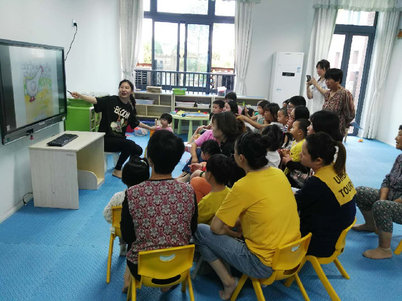 为了更好地宣传早期教育,转变家长的育儿理念,给0—3岁婴幼儿家庭带去更全面、更科学的早教指导与服务。蒸淀幼儿园于2019年6月6日上午九点半,开展了社区0—3岁宝宝亲子早期教育活动。指导老师们精心布置了情景性、游戏性、多样性的活动区域,如小小涂鸦、小小阅读,小小搭建等,丰富多样的游戏材料吸引着每一位家长与宝宝的积极参与,每个游戏区域都可看到宝宝们兴趣盎然的参与活动,一张张小脸玩得喜逐眼开,流连忘返。在亲子小集体活动中,指导老师根据宝宝语言发展的月龄特点及已有的生活经验出发,有目的的设计了《亮晶晶的泡泡》活动。活动内容丰富有趣,符合幼儿的月龄特点,深受家长喜爱。宝宝们故事听得不亦乐乎,家长也乐在其中,在共同互动中不仅增加了亲子关系,也锻炼了宝宝语言交往能力。整个活动不但让孩子充分体验了幼儿园集体活动的快乐,同时也让家长们感受到了家园共同参与幼儿早期教育的重要性,体验着亲子游戏的乐趣,沉静在欢快的亲子活动中。