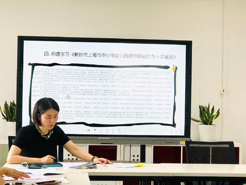为深入贯彻习近平新时代中国特色社会主义思想和党的十九大精神,进一步加强师德师风建设,2020年6月11日下午,蒸淀幼儿园组织全体教职工开展了《新时代上海市中小学幼儿园教师职业行为十项准则》的系列学习活动。